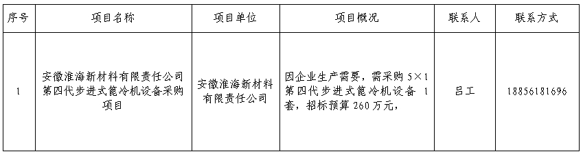 淮海實業集團2024年第一季度招標計劃