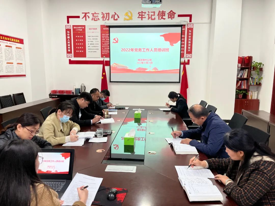 11月21日,相王現(xiàn)代公司組織開展基層黨務(wù)培訓,深入學習貫徹黨的二十大精神,全面提高黨務(wù)工作者的政治素質(zhì)、專業(yè)能力和業(yè)務(wù)水平,凝聚開創(chuàng)工作新局面的強大合力,全面提升工作質(zhì)效。