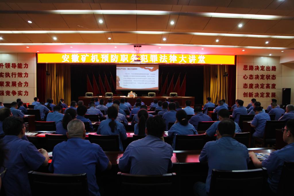 為扎實(shí)開展“警示教育宣傳月”活動,引導(dǎo)廣大黨員干部增強(qiáng)廉政意識、規(guī)矩意識、法律意識,近日,安徽礦機(jī)黨委邀請淮北市杜集區(qū)人民檢察院第一檢察部況倩倩主任,開展職務(wù)犯罪預(yù)防法律講座。該公司中層以上管理人員、經(jīng)營一線關(guān)鍵崗位工作人員共計(jì)120余人參加學(xué)習(xí)。