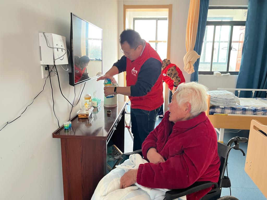 共產(chǎn)黨員張雪燕帶領(lǐng)志愿者們,整理床鋪、擦拭家具、擦洗門窗、掃地拖地,一邊干活、一邊與老人拉起家常,了解生活情況……。“哇,房間整潔了,心情舒適很多。”老人們相互打趣,充滿了歡聲笑語。
