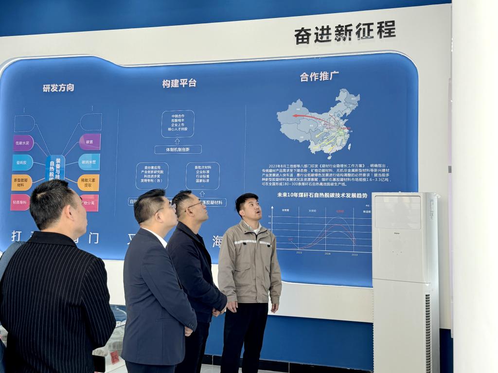會前,陳振海一行實地參觀新材料公司企業展廳、中控室等地,座談交流“煤矸石自熱式脫碳技術應用、治理模式、項目建設”等內容。
